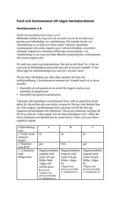 Facit Och Kommentarer Till Nagra Hemlaborationer Kursnavet